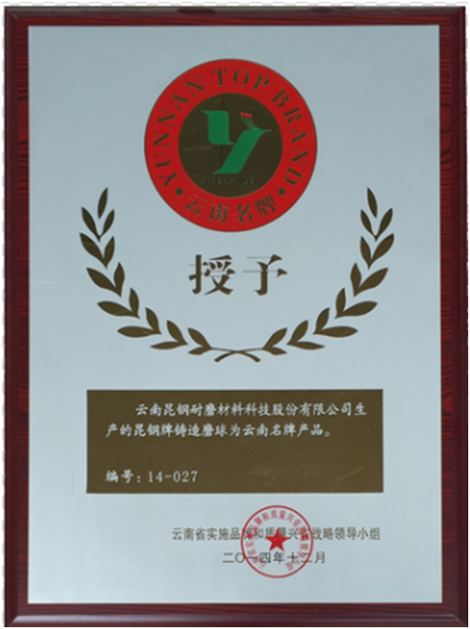 As the first wear resistant material producer listed on “new three board” in China, stock code 831212, Yunnan Kungang Wear Resistant Material Science Co.,Ltd. implements the market transaction. The company has obtained the ISO9001 quality system certificate, ISO14001 environmental management system certificate, national high-tech enterprise certificate, Yunnan high-tech enterprise certificate,Yunnan brand product certificate, China foundry association membership certificate. The company has found Yuxi Wear-resisting material of science and technology research center and won honners,such as the high quality casting gold medal the first prize of Yunnan science and technology invention and so on.
