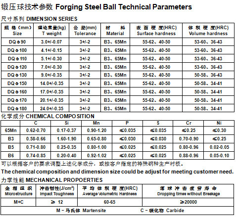 鍛壓球技術(shù)參數(shù)